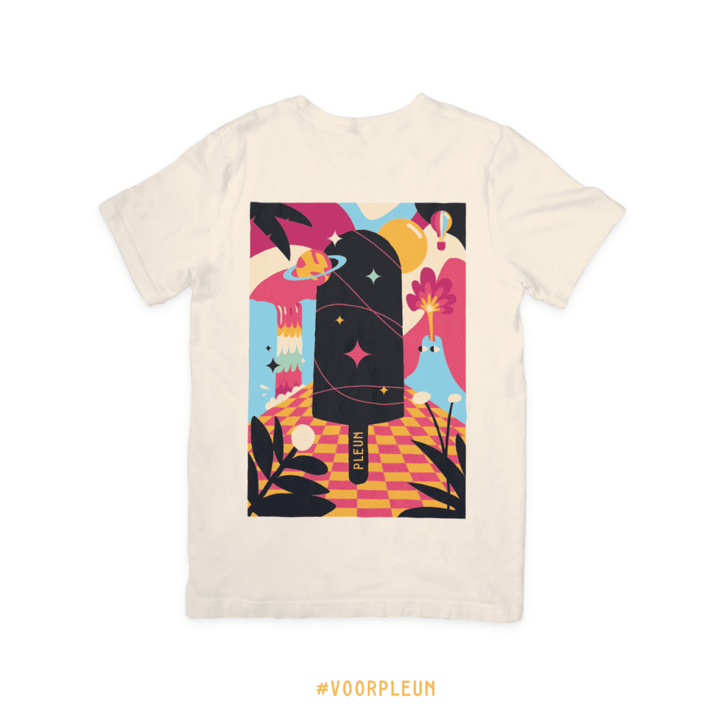 Met veel trots presenteren Evelien en Koos Janssen iets nieuws. De bijzondere droomwereld van hun zieke dochter, de negenjarige Pleun, wereldberoemd in de koekstad met haar Regenboogijsje, is verbeeld in een waanzinnig nieuw ontwerp. Dit ontwerp siert een tof (kinder-) shirt en zelfs een strandstoel. Niet toevallig zijn deze zomerse items straks als eerste exclusief te koop bij het concert Thuis bij Snelle in de Adelaarshorst, aanstaande vrijdag 16 en zaterdag 17 juni.