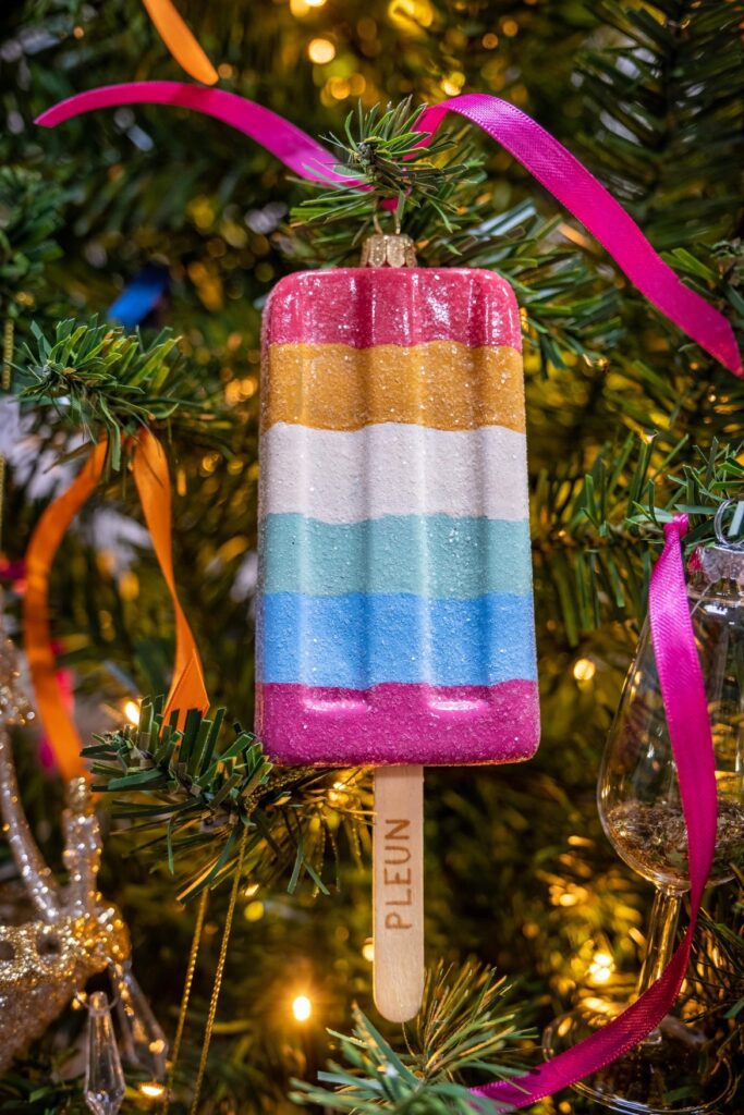 Na het succes van de Lebuinuskerk en de roodgele Santa Claus komt Ten Kate Flowers & Decorations ook deze kerst met een nieuwe speciale x-mas edition van een Deventer icoon. Een uniek handgeblazen en -beschilderde kersthanger van 17 cm van het Pleun’s Regenboogijsje met een écht houten stokje! Elk item is dus niet alleen supercool, maar ook nog eens uniek!